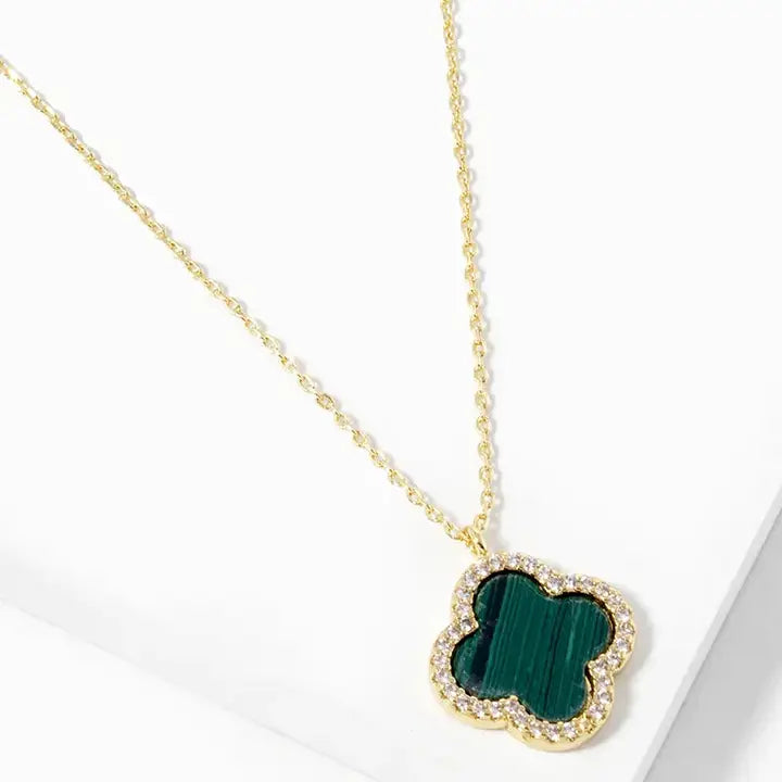 18K Gold Dipped Cz Pave 15MM Quatrefoil Pendant