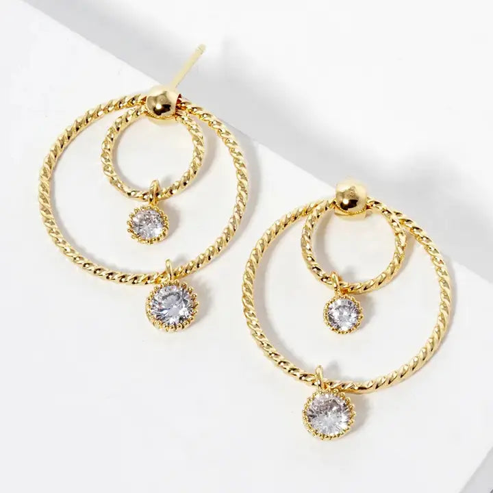 18k Gold Dipped Round Cz Drop Double Circle Post